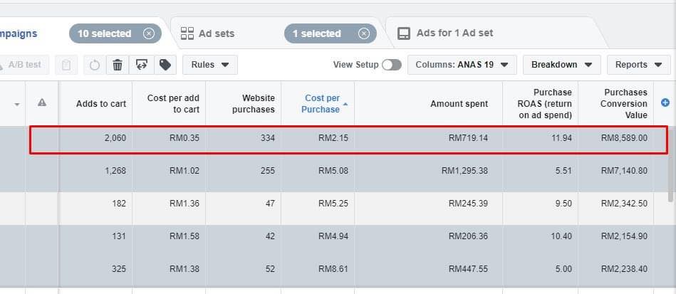 Average ROAS daripada 5 - 12. Agak tinggi tu, spend ads tak sampai 1K, spend baru RM700, sales dah RM8.5K. Menggunakan strategi & teknik yang sama