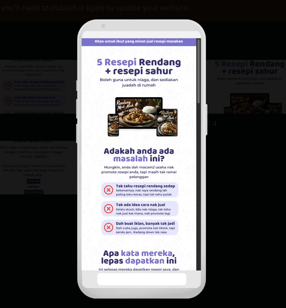 Anda bakal Belajar Bina Salespage Untuk Pelanggan Membeli Buku Resepi Anda, Notification Sales Tanpa Henti